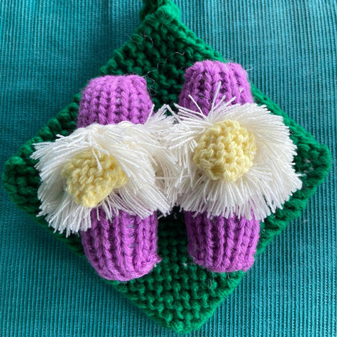 Each one measures approximately 4-5 inches in diameter.  Do remember, that each hand knit item is unique and sizes may vary slightly.