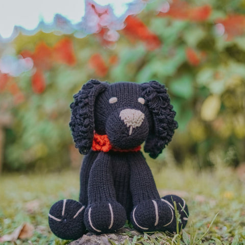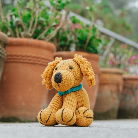Each puppy measures approximately 10 inches tall, and around 7 inches long.  Do remember, that each hand knit item is unique and sizes may vary slightly.