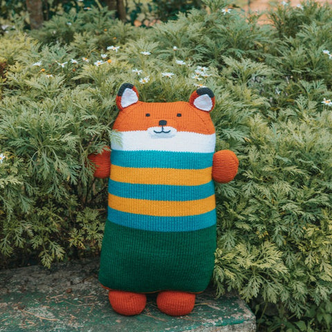 Each Animal Pillow measures approximately 19 inches long, and around 11 inches wide.  Do remember, that each hand knit item is unique and sizes may vary slightly.